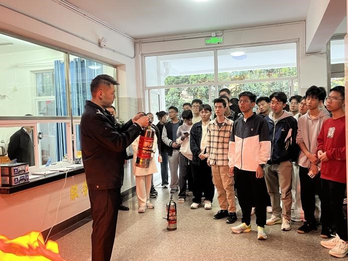 消防疏散演练结束后,保卫处工作人员对参与演练的同学进行了消防技能培训。培训内容涵盖灭火器、消火栓等消防设施的工作原理,火灾逃生、自救知识,以及灭火器的正确使用方法等。在实操环节,工作人员现场演示了灭火器的操作步骤,并指导同学们亲身体验从发现火情到扑灭明火的完整流程,有效提升了初期火灾扑救与应急疏散的实战能力。