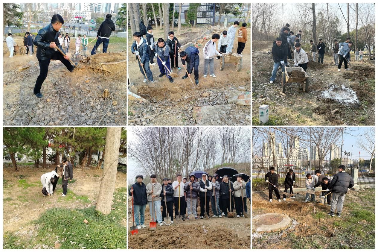 在实践现场,师生们分工明确、默契配合。大家手持铁锹、锄头等工具,对校园绿化荒地与种植区进行全面整治。一些同学弯腰清扫落叶、枯枝和杂草,并用推车将杂物集中打包清运;另一些同学认真翻松土壤,剔除石块与草根,为后续绿植、花草栽种做好准备。春日的阳光下,大家干劲十足,不怕脏、不怕累,逐一排查每一个角落,确保不留卫生死角。