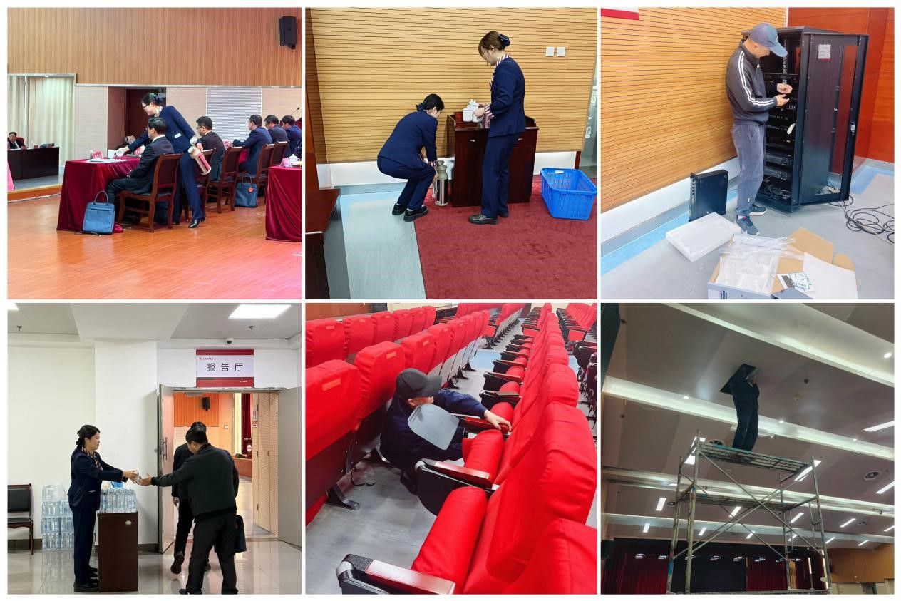 周密部署 会前筹备精细 接到保障任务后,翡翠湖校区物业服务中心高度重视,迅速召开工作会议,细化责任分工,多次对接大会筹备小组,制定切实可行的保障方案,全面梳理会议需求与服务重点。会前,组织外包服务企业对会场进行精细化保洁,对设施设备进行调试检修;同时按照会务要求精准摆放桌椅、设置指引标识,为参会代表营造整洁、有序、舒适的参会环境。