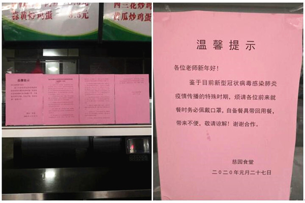 自1月29日起,寒假值班食堂严格执行日消毒、日测温、日报告工作制度,做好源头防控。值班食堂认真做好环境整治,对各功能间、公共区域等重要位置、重点部位及经常接触点进行清洁、消毒。按照“非必须,不提供”原则,对就餐者测试体温,提倡自带餐具、外带用餐,要求就餐者戴口罩方准进入食堂,同时为隔离人员、防疫工作人员做好营养餐送餐服务。