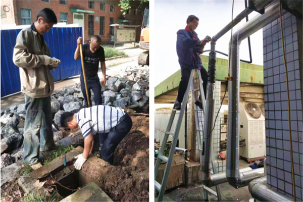 暑期里,能源服务中心工作人员坚守岗位。暑期能源服务中心共接屯溪路校区供水网管漏水抢修近20次、水电维修200余次、协调电表出户供电管道敷设、老旧校区改造水表出户、校园雨污排水管网分流排放改造工程的图纸设计、工作量清单编制及招标等工作,翡翠湖校区路灯维修200盏、更换学生公寓热水器电表72块、高压切换4次、抢修加压站水管等。他们的坚守为师生提供更好的供水、供电保障。