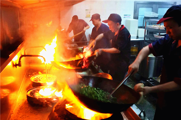 操作间内,炙热的炉火、超40度高温,饮食服务中心的大厨们,挥动着大勺,为师生精心烹饪一道道美食。
