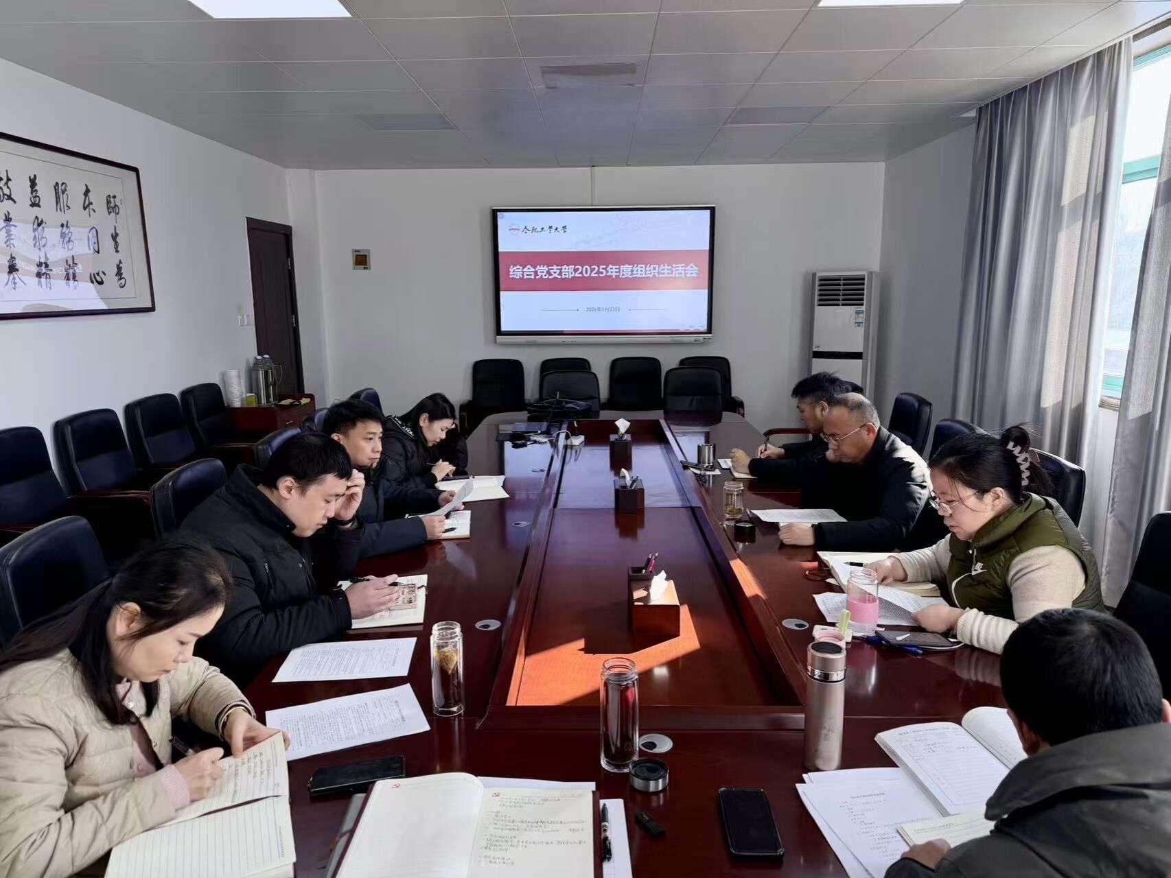 为深入学习贯彻习近平新时代中国特色社会主义思想,全面贯彻落实党的二十届四中全会精神,进一步增强党组织的凝聚力和战斗力,不断提升党员的思想觉悟和服务能力,综合党支部于1月23日上午召开了2025年度组织生活会,并开展民主评议党员工作。党员们围绕党章要求和党员标准,结合后勤工作实际,开展批评与自我批评,查找不足,明确改进方向。